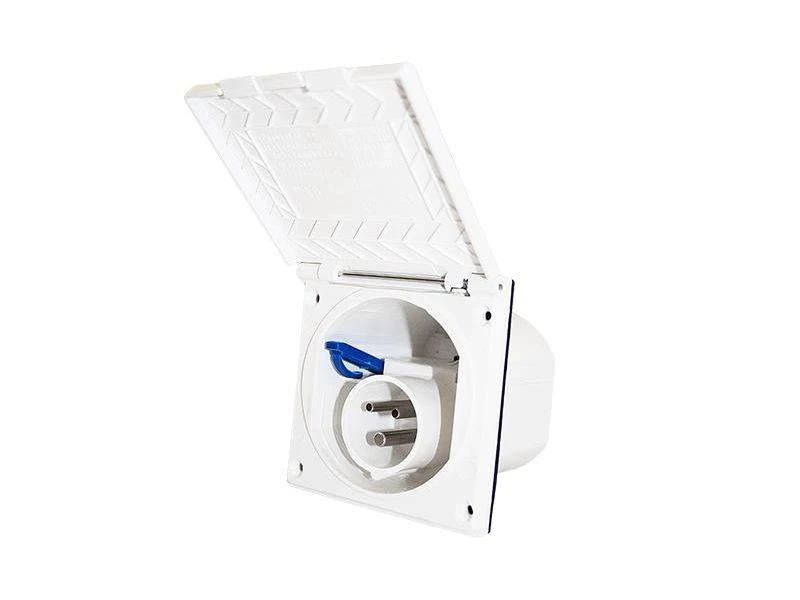 Invoerdoos welke gemonteerd wordt in de wand van een caravan en/of camper.