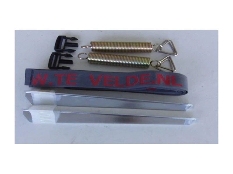 Alle Te Velde voortenten worden geleverd met stalen frame, gordijnen en gordijnophanging, tochtstrook/wielflap en pennen en haringen.